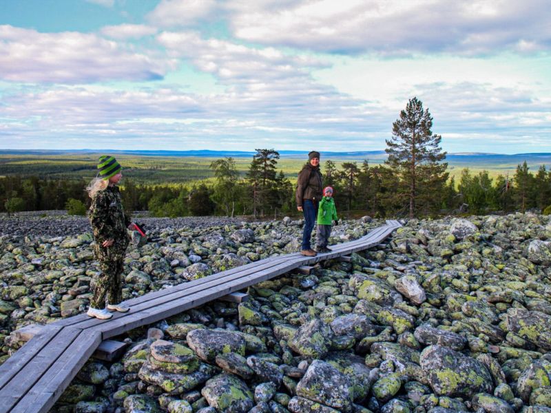 Guided hike to the summit of Kätkävaara fell, where you will find one of the most impressive sights in Lapland. Admire the scenery, 2 – 10 kilometres hike depending on the participants and conditions. A light lunch will be provided in a log tepee. After this nice day please try a Finnish sauna at your hotel in the evening.